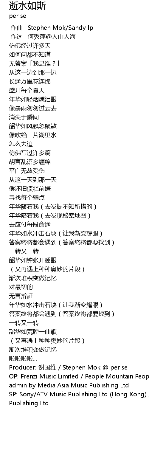 | [03:31.63] | OP: Frenzi Music Limited / People Mountain People Sea Productions admin by Media Asia Music Publishing Ltd |