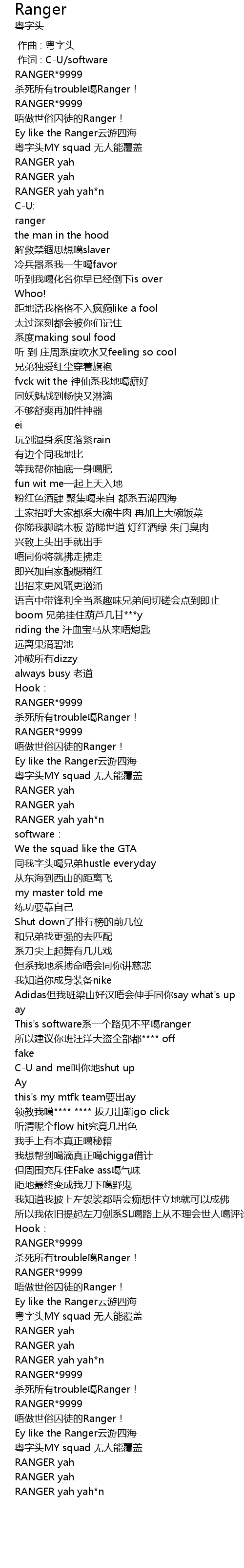 | [02:27.738] | This's software系一个路见不平噶ranger 所以建议你班汪洋大盗全部都**** off |