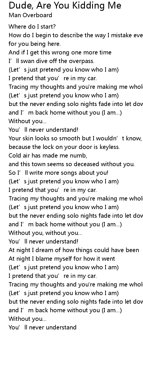 | Song | Dude, Are You Kidding Me |