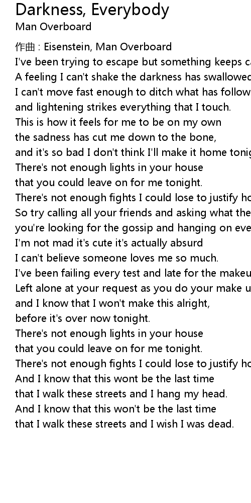 | A feeling I can' t shake the darkness has swallowed me. | |
