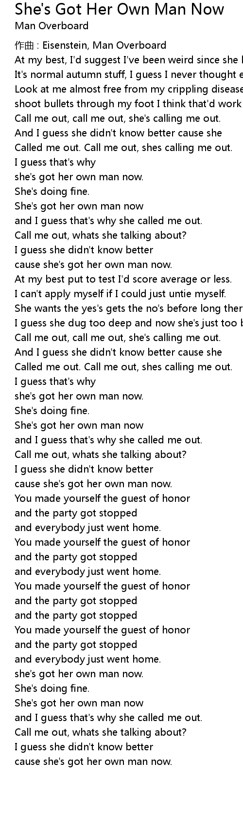 | cause she' s got her own man now. | |