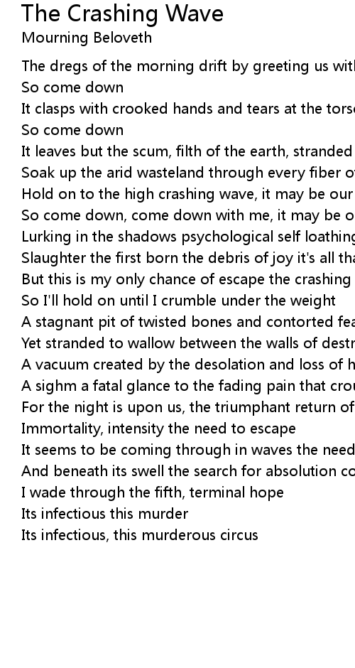 Hold on to the high crashing wave, it may be our only chance of escape |