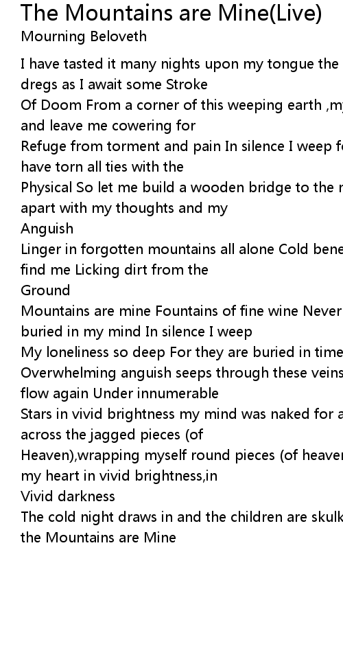 Mountains are mine Fountains of fine wine Never will you find For they are buried in my mind In silence I weep |