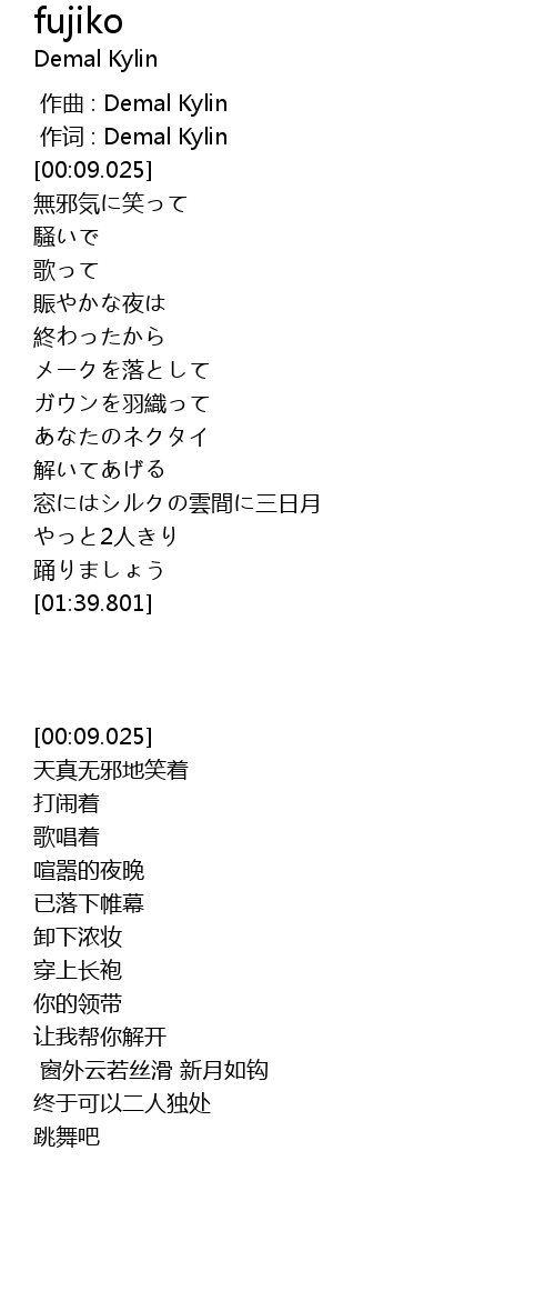 | [00:00.000] | 作曲 : Demal Kylin |