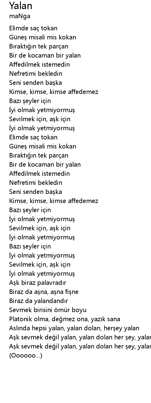| Aşk sevmek değil yalan, yalan dolan her şey, yalan, yalan dolan | |