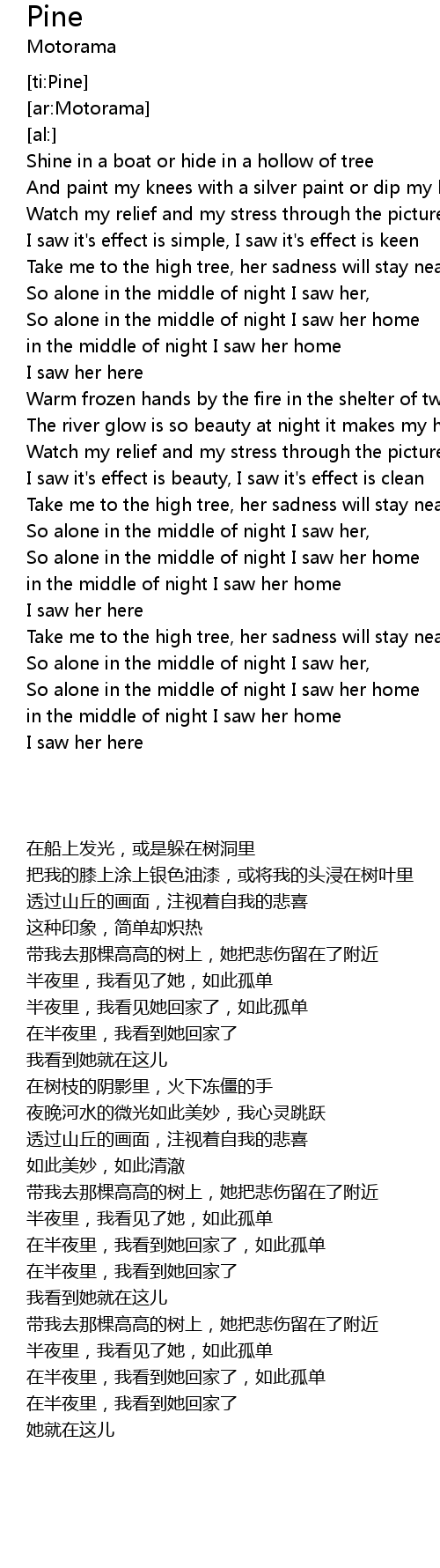| [02:54.29] | Take me to the high tree, her sadness will stay near |