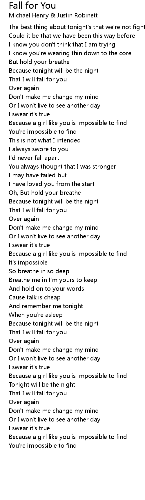 That I will fall for you |