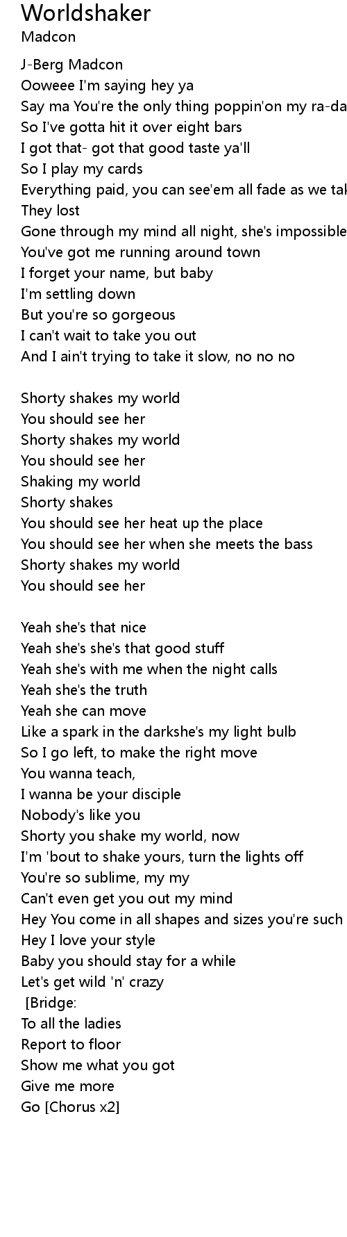 Shorty you shake my world, now |