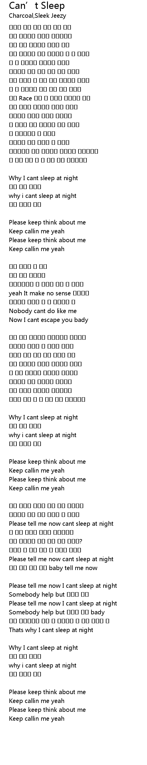 Can' t Sleep Lyrics