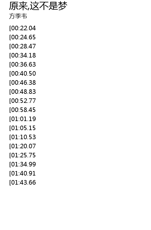 | [03:02.32][01:25.75] | 噢! 原来这不是梦 |