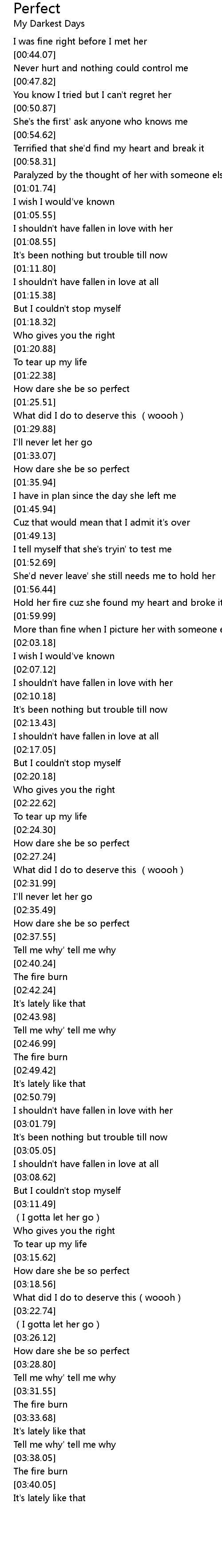 | [03:16.99] | How dare she be so perfect |