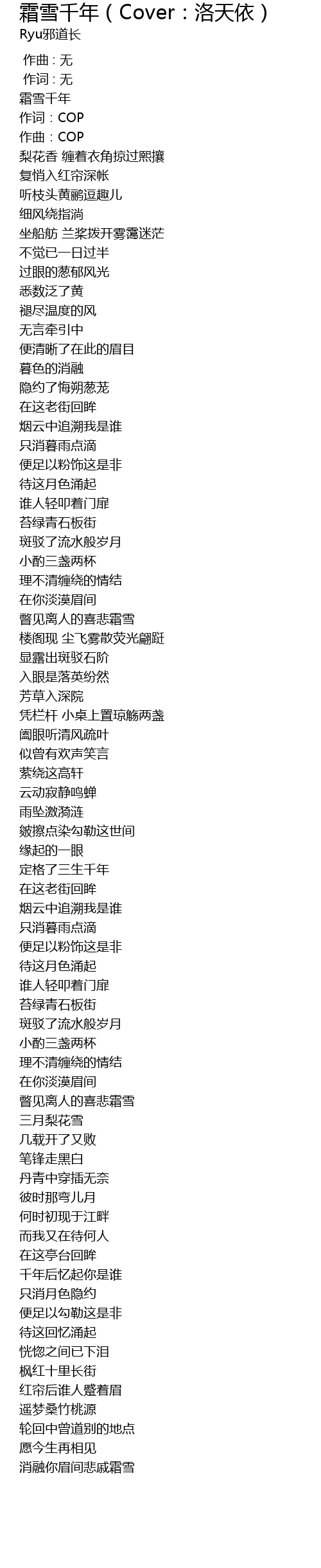 | Song | 霜雪千年(Cover:洛天依) |