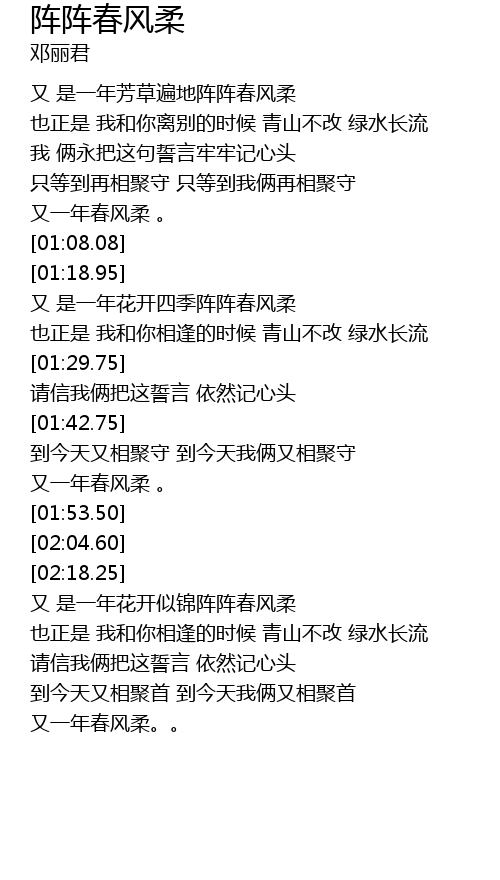 | [00:29.50] | 又 是一年芳草遍地阵阵春风柔 |