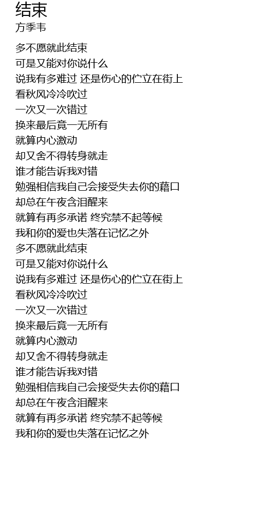 | [01:23.050] | 就算有再多承诺 终究禁不起等候 |