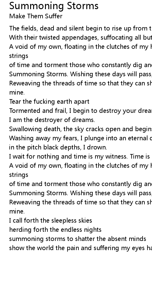 summoning storms to shatter the absent minds |