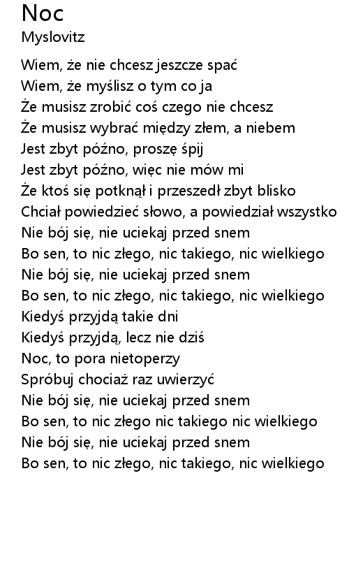 | [01:44.43] | Bo sen, to nic złego, nic takiego, nic wielkiego |