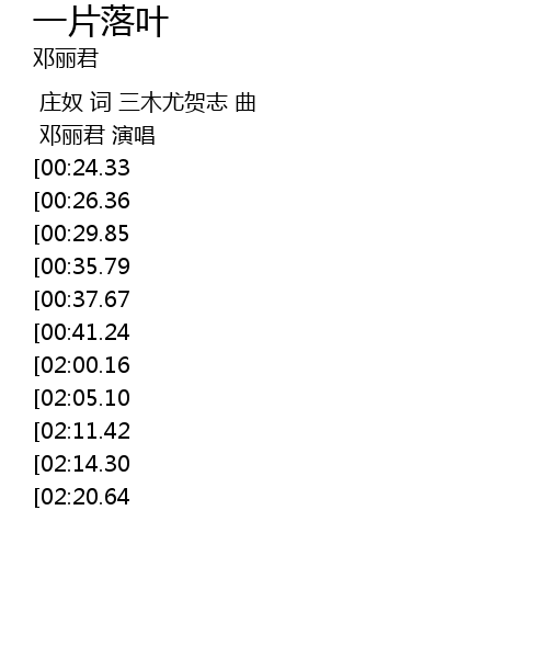 | [02:44.77][02:05.10][00:51.62] | 树上的一片落叶 |