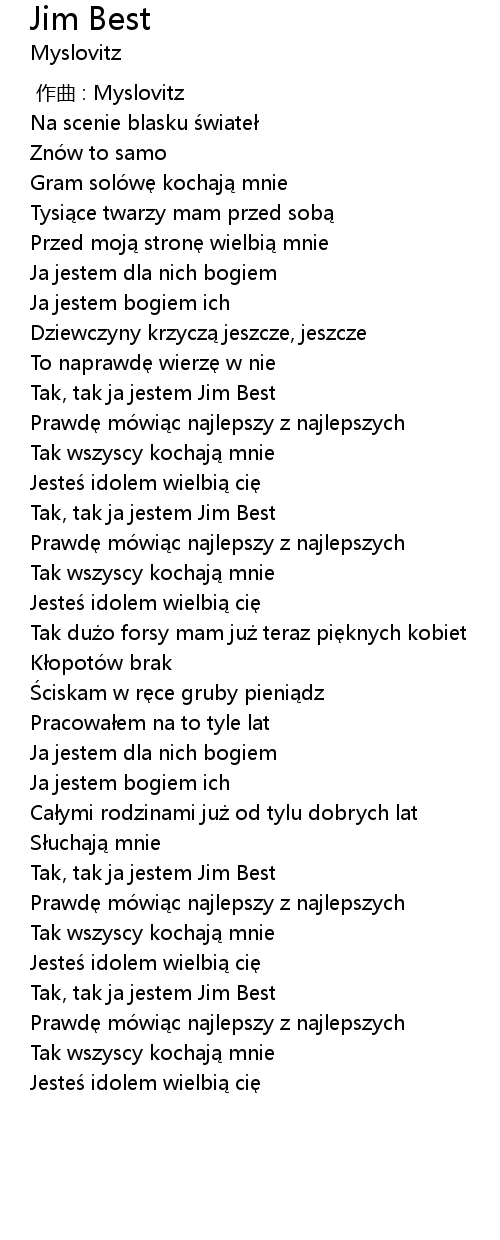 | [00:51.74] | Tak, tak ja jestem Jim Best |