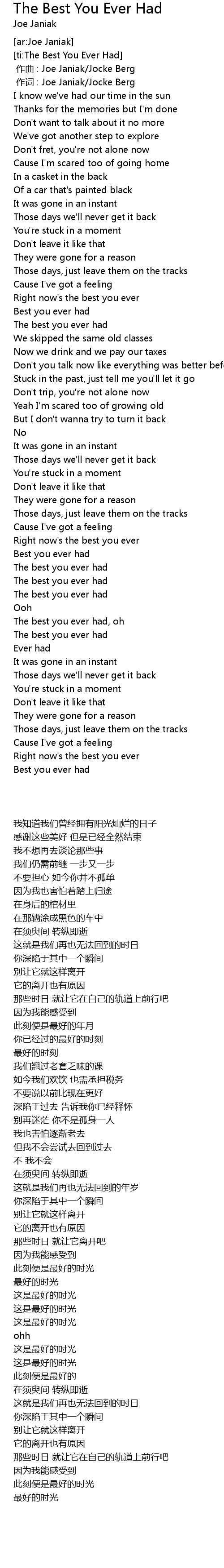 | [00:00.341] | 作词 : Joe Janiak/Jocke Berg |