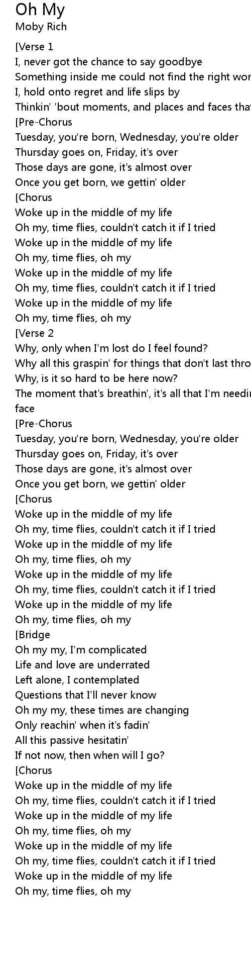Oh my, time flies, oh my |