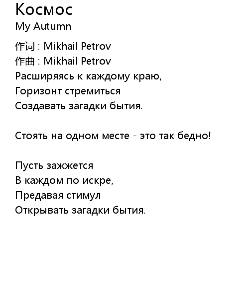 | 作词 : Mikhail Petrov | |