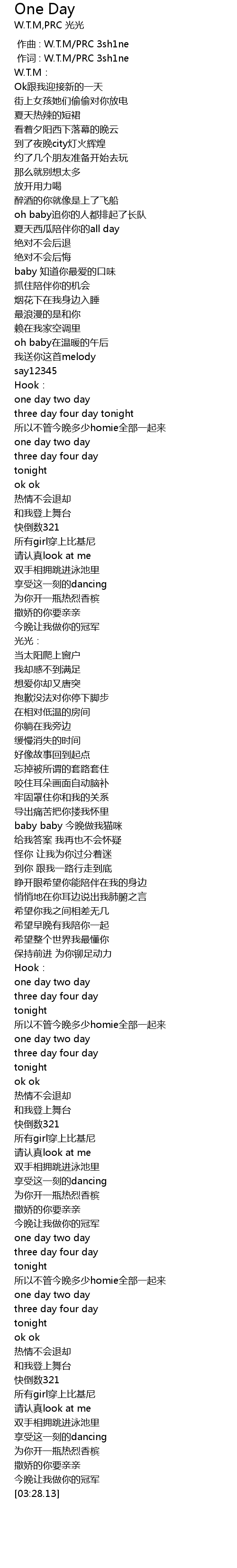 | [00:01.000] | 作词 : W.T.M/PRC 3sh1ne |