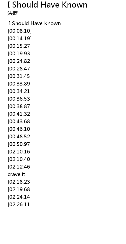 | [03:34.88][02:18.23][01:01.45] | I should have known |