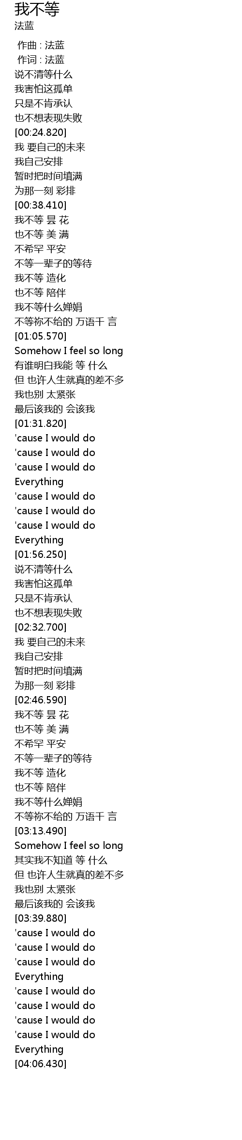 | [02:56.010] | bù děng yī bèi zi de děng dài |