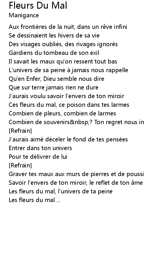 | Ces fleurs du mal, ce poison dans tes larmes | |