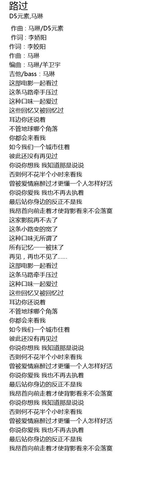 | [00:16.490] | 吉他/bass:马琳 |