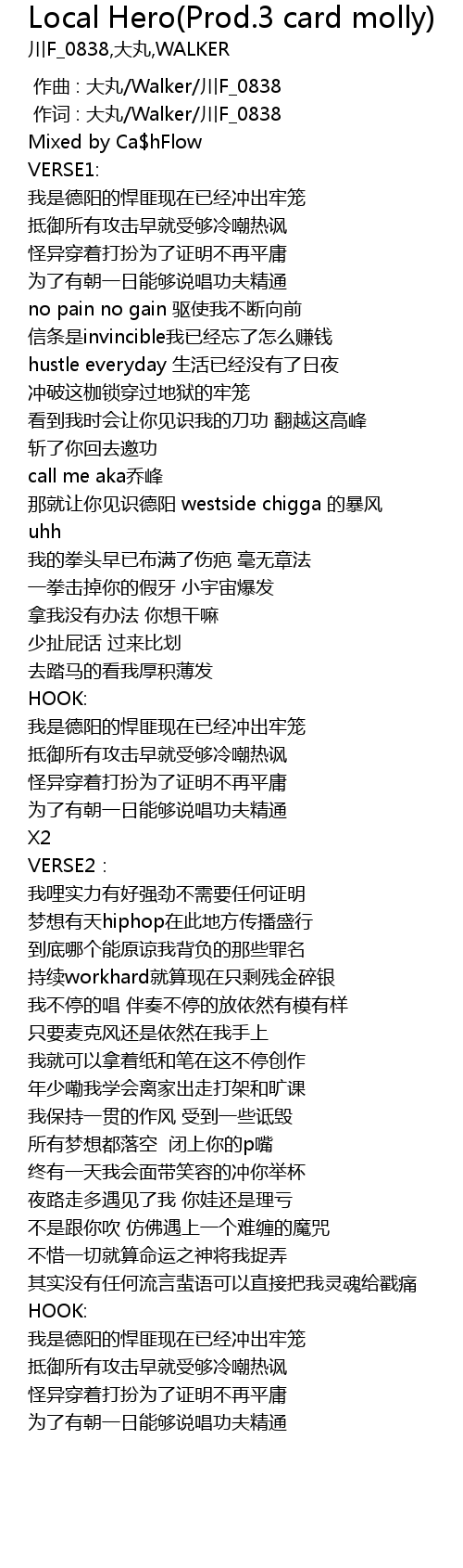 | [00:00.000] | 作词 : 大丸/Walker/川F_0838 |