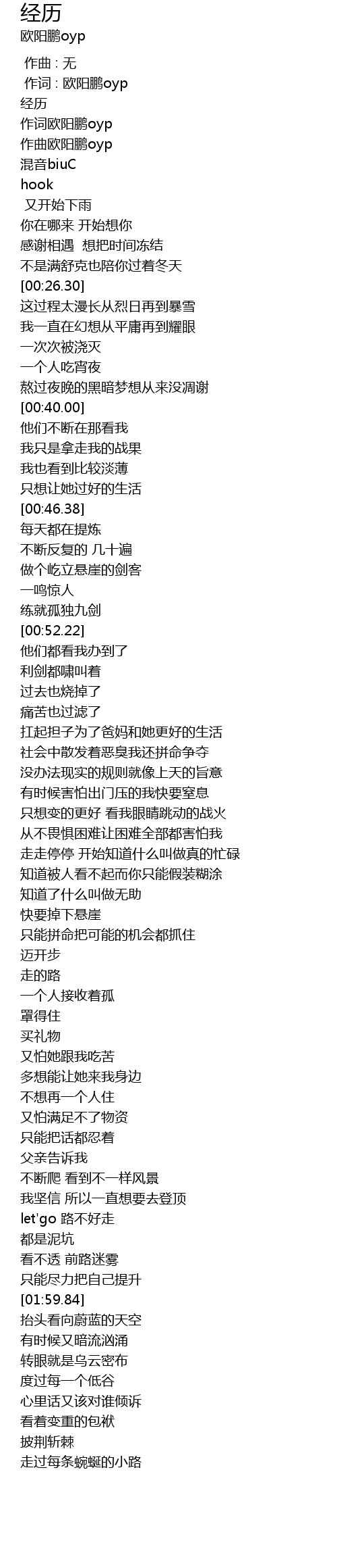 | [00:00.364] | 作词 : 欧阳鹏oyp |