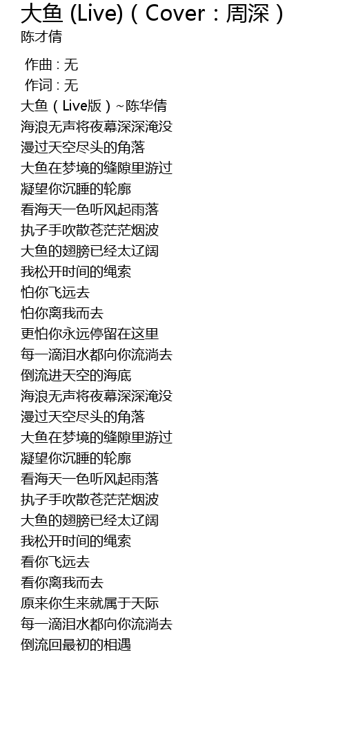 | [00:45.608] | 大鱼(Live版)~陈华倩 |