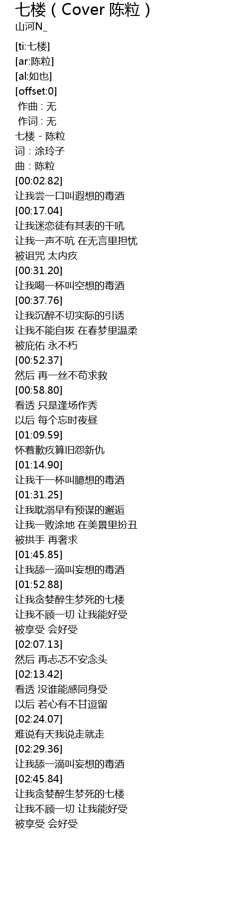 | [02:47.18] | 让我贪婪醉生梦死的七楼 |