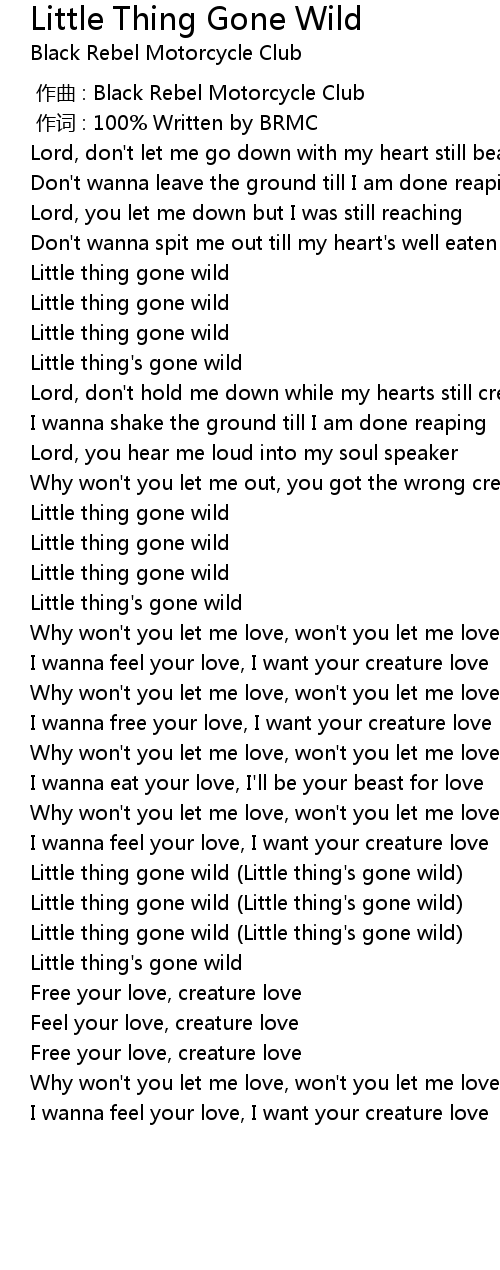 | [02:33.00] | Little thing gone wild (Little thing's gone wild) |