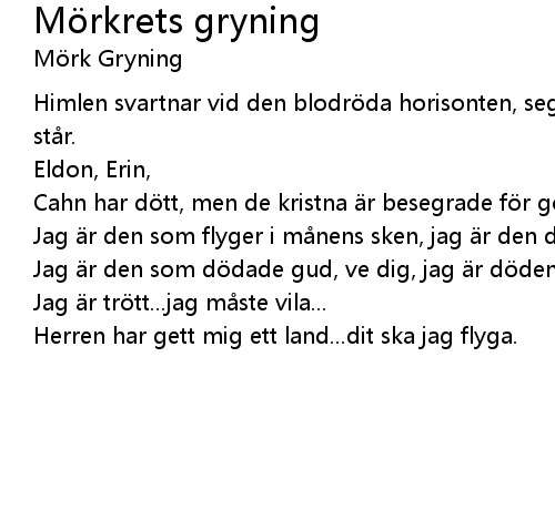 | Himlen svartnar vid den blodr da horisonten, segern r v r, upp liken jag st r. | |