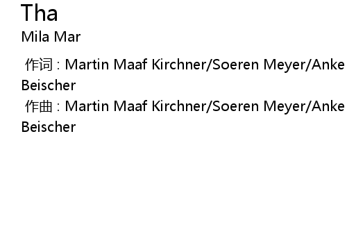 | [00:00.000] | 作词 : Martin Maaf Kirchner/Soeren Meyer/Anke Hachfeld/Katrin Beischer |