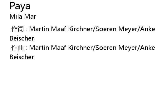| [00:00.000] | 作曲 : Martin Maaf Kirchner/Soeren Meyer/Anke Hachfeld/Katrin Beischer |