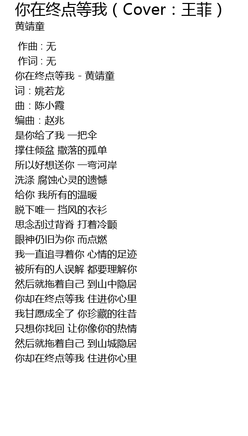| [00:03.842] | 你在终点等我 - 黄靖童 |
