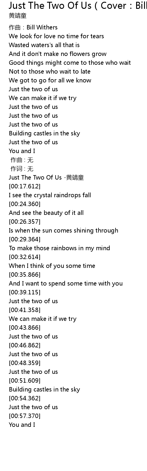 | [00:04.864] | Just The Two Of Us huang jing tong |