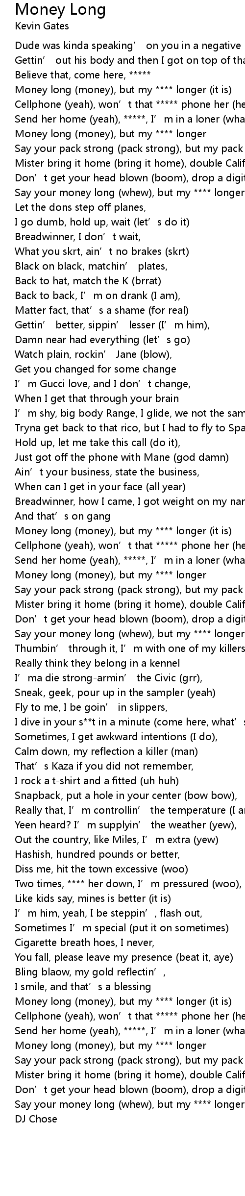 | [00:06.62] | Money long (money), but my **** longer (it is) |