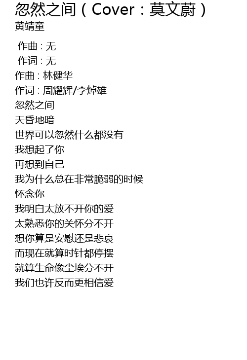 | [00:02.984] | 忽然之间 |
