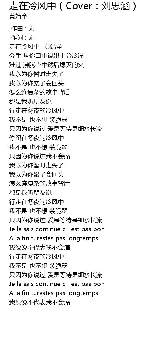 | [00:14.467] | 走在冷风中 -黄靖童 |