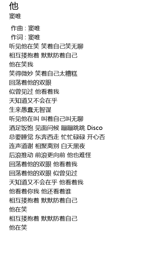 | [02:57.000] | tā kàn zhe nǐ wǒ tā hái kàn zhe shuí |