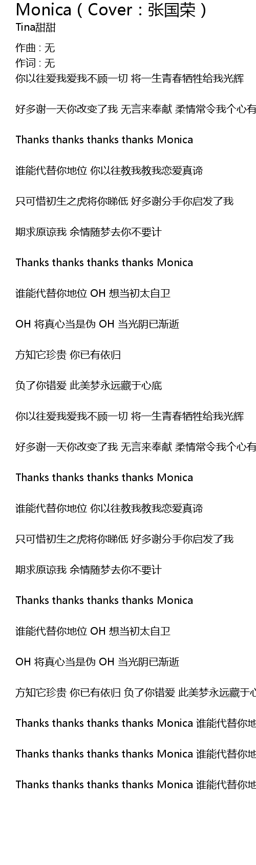 | Thanks thanks thanks thanks Monica 谁能代替你地位 |