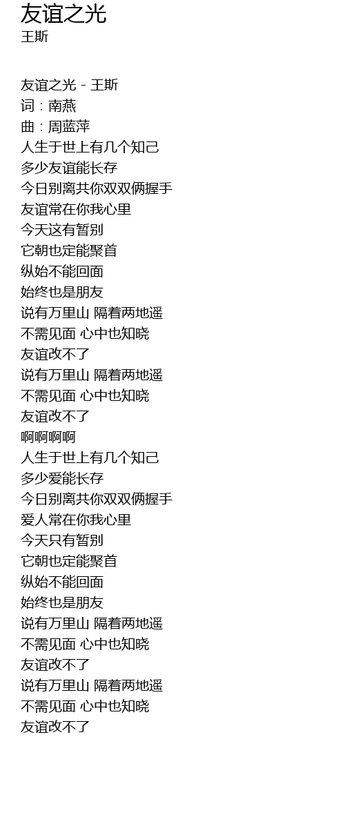 | 友谊之光 - 王斯 | |