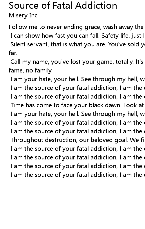 I am the source of your fatal addiction, I am the one who feeds your rage. |