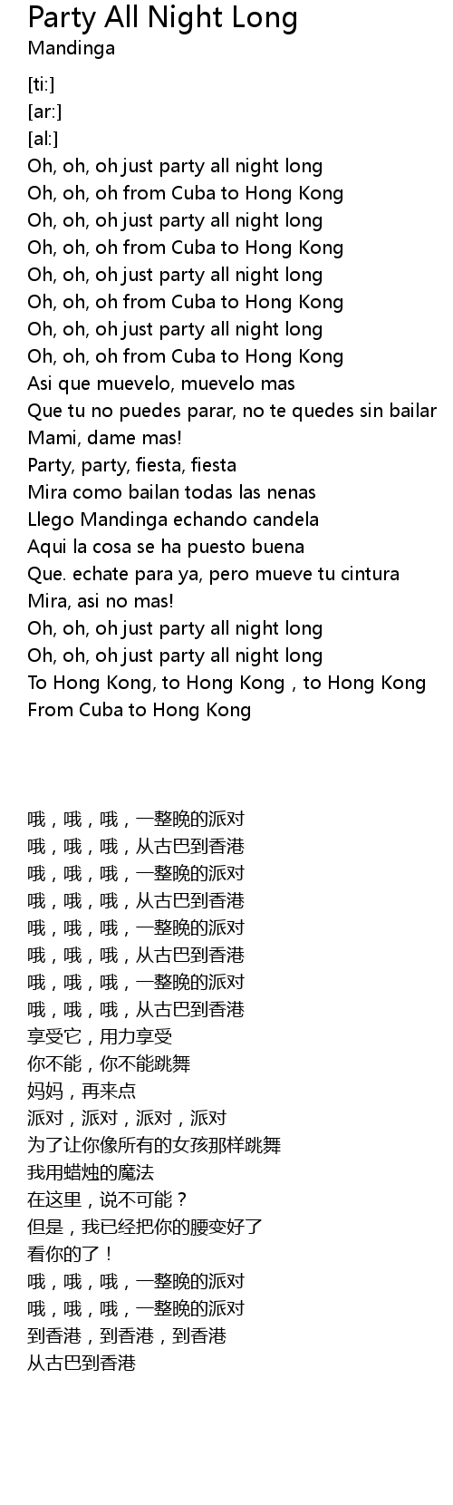 | [00:53.60] | Oh, oh, oh from Cuba to Hong Kong |