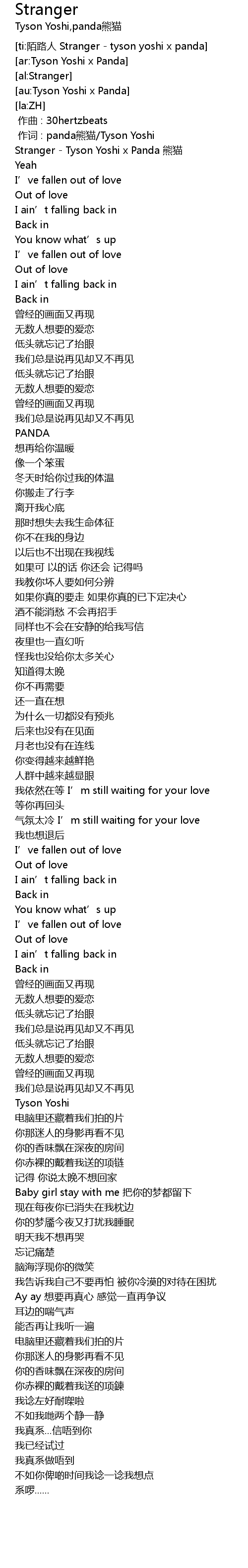 | [00:01.57] | Stranger - Tyson Yoshi x Panda 熊猫 |