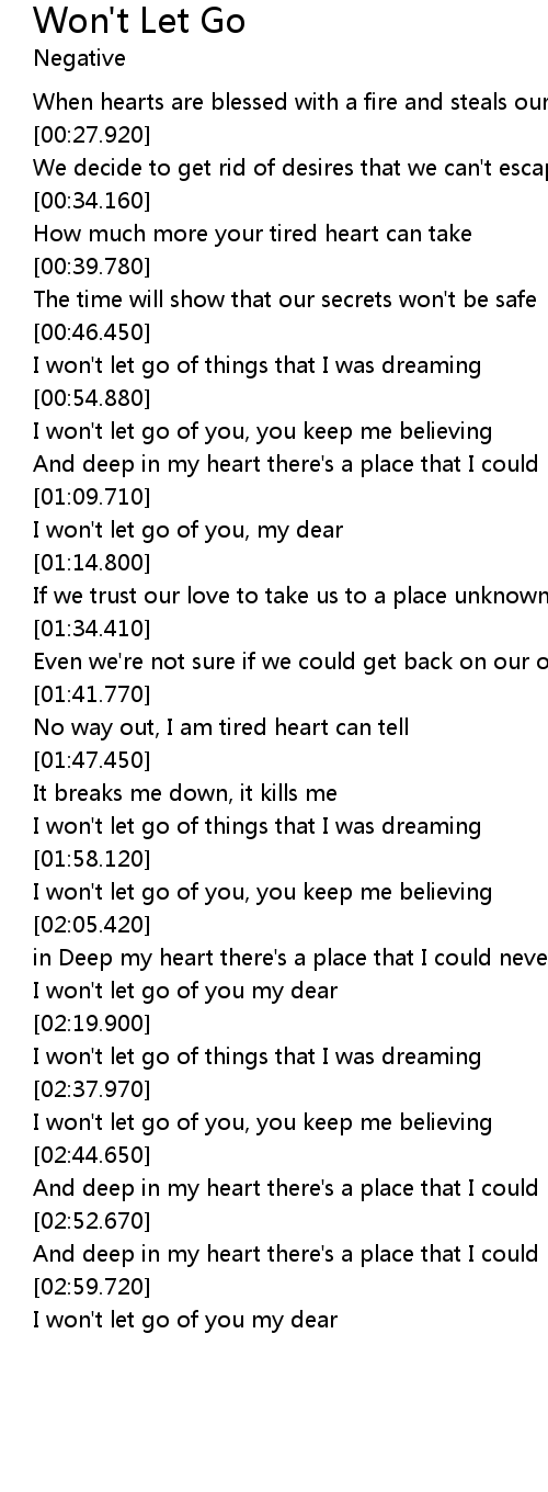 | [00:56.190] | I won' t let go of you, you keep me believing |